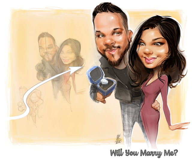 Hire a caricature artist for your event, corporate gathering, trade show or your wedding. Your guests will indulge in laughter and take a beautiful original piece of hand drawn art with them for the memories.